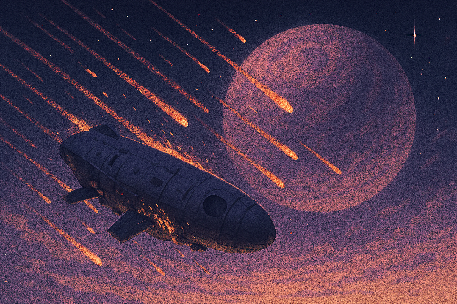 Projetado para levar mercadorias entre mundos. Nave lenta, espaçosa e versátil. Pode carregar itens extremamente úteis… ou totalmente inúteis.